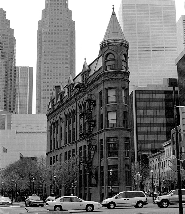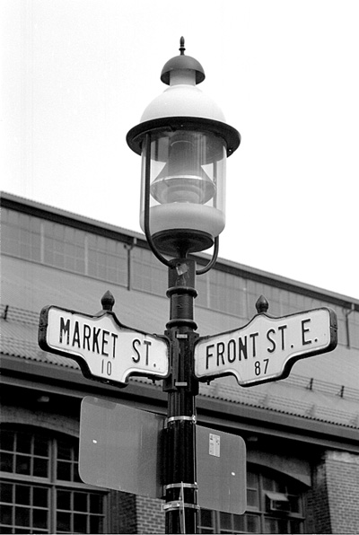 There's that dang building again. One of the "oddities"/"niceties" of Toronto. Wedged right in the middle of Front St. at Javis St. it kind of suits the neighbourhood... Camera: K1000 |