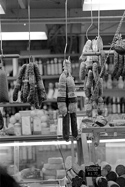 Nothing says "come and get it !" like long tubular meats dangling from a variety of hooks. Gets a guy feeling all squirmish . . . let's keep moving on folks. . . Camera: K1000 |